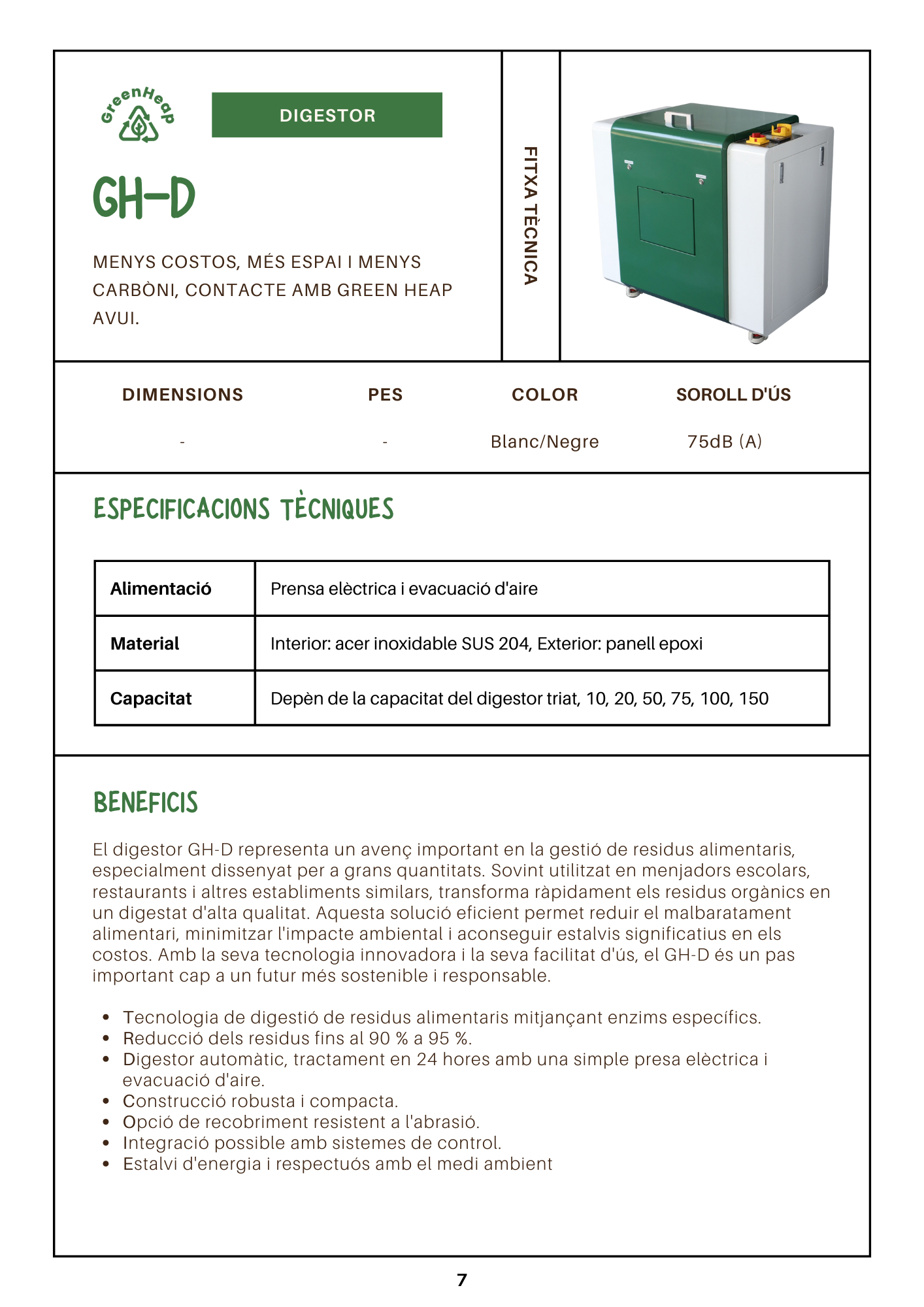 El GH-D et permet llençar tots els residus d'aliments i reduir-los fins a un 95%.